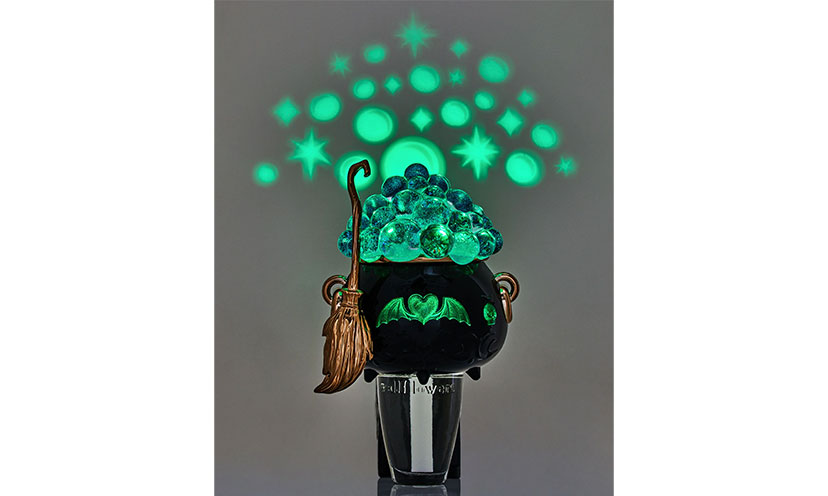 This Wallflowers Fragrance Plug is a magical mixture of decoration and function. The black cauldron shape is adorned with a witch’s broom (must have that) and a bubbling brew foaming out the top (or so it seems). It also projects star and planet shapes on the wall in rotating colors.